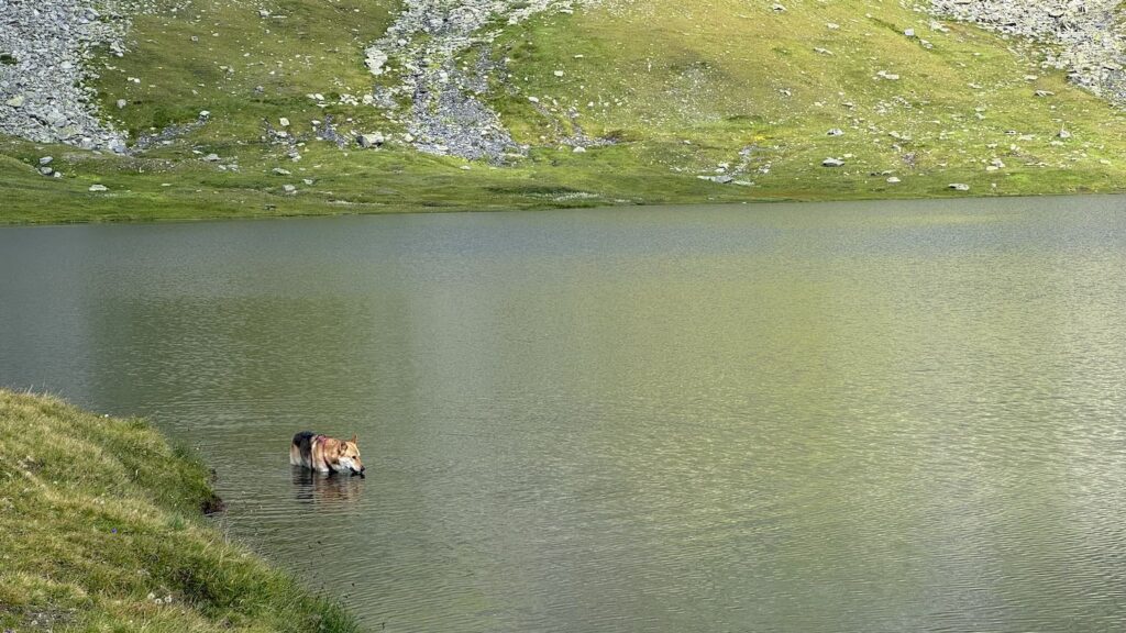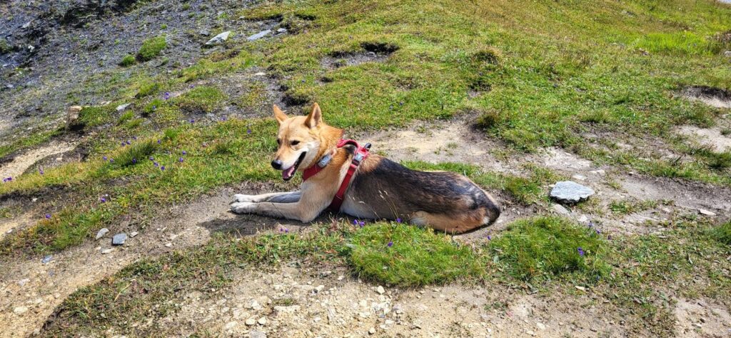 Ik hol op TempootjeTurbo naar hem, daar aangekomen is meneer doorgedribbeld – auto’s, motoren, van CH naar IT, je gelooft het niet – naar: de auto! En daar lag ie relaxed op mij te wachten. Is ons waarschijnlijk kwijt geraakt. Ik vond het wel een mooie oplossing van ‘m, maar zo schiet ons trail niet echt lekker op natuurlijk.